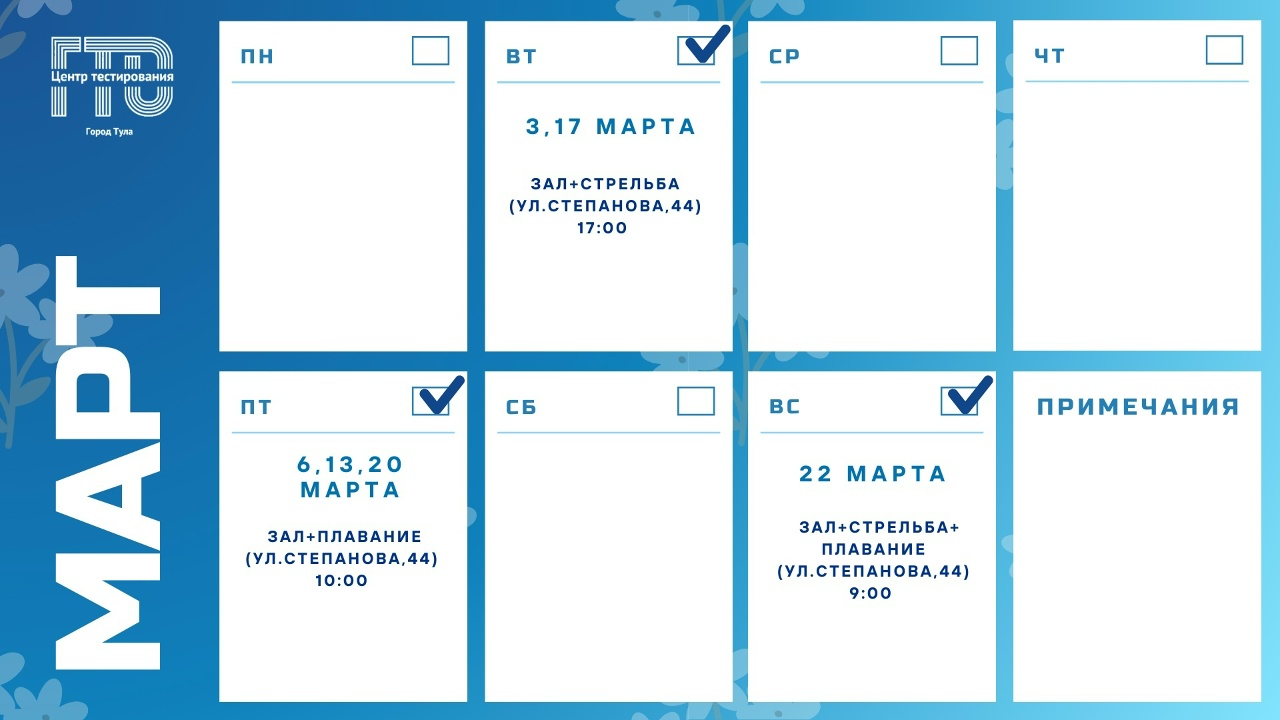 Публикуем график испытаний ВФСК ГТО для туляков на март и рассказываем, что для этого надо.