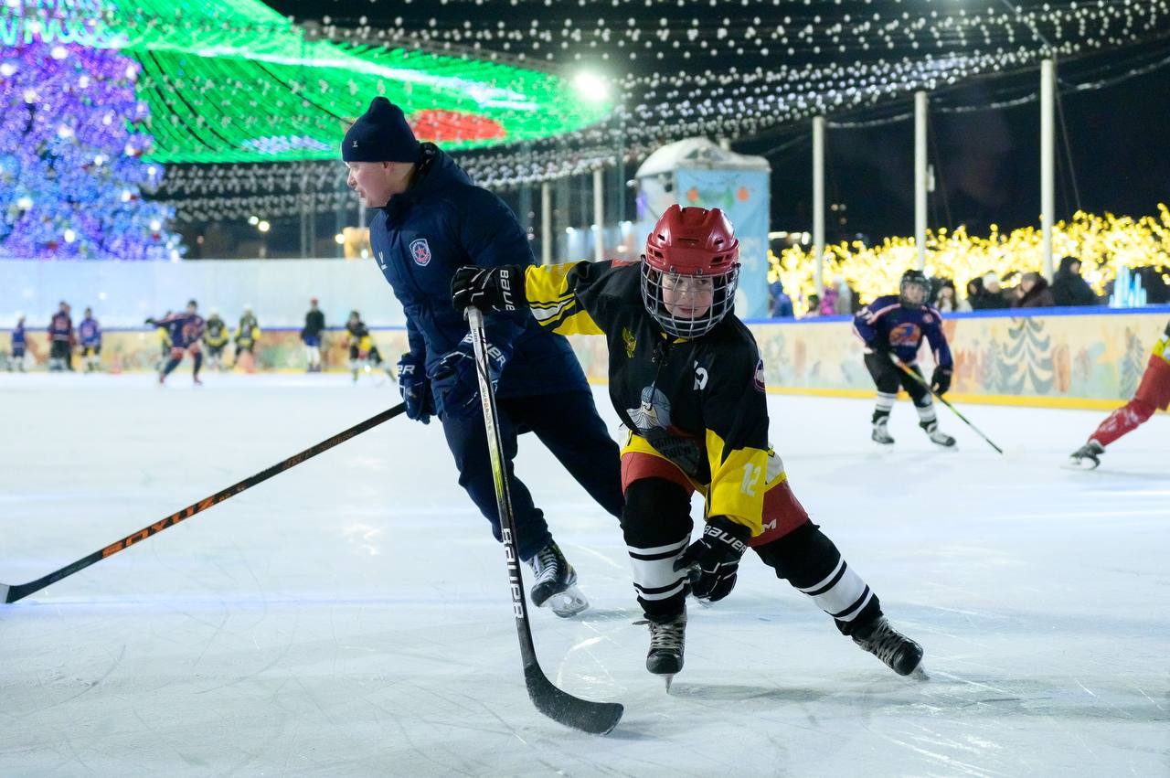 В самом сердце Тулы, на Губернском катке, состоялся мастер-класс для юных дворовых хоккеистов, организованный тренерами «Академии Михайлова».